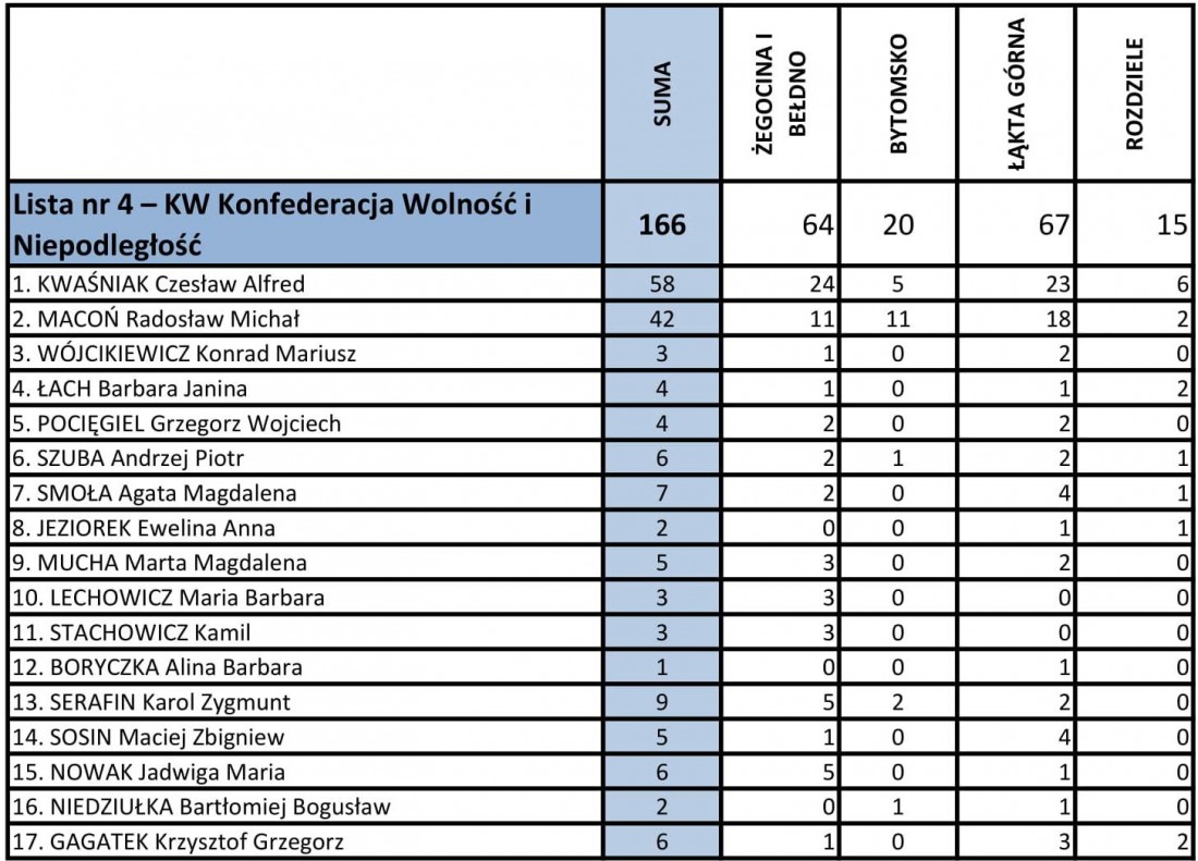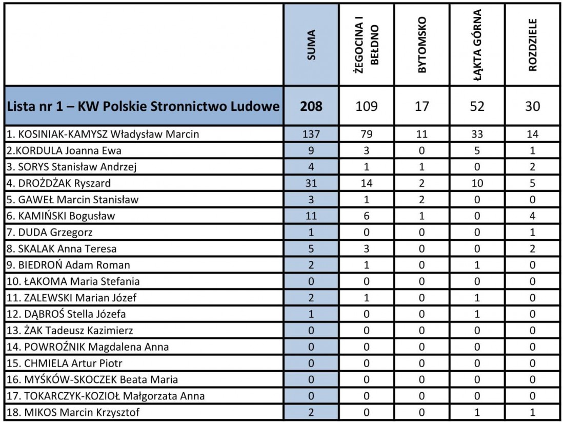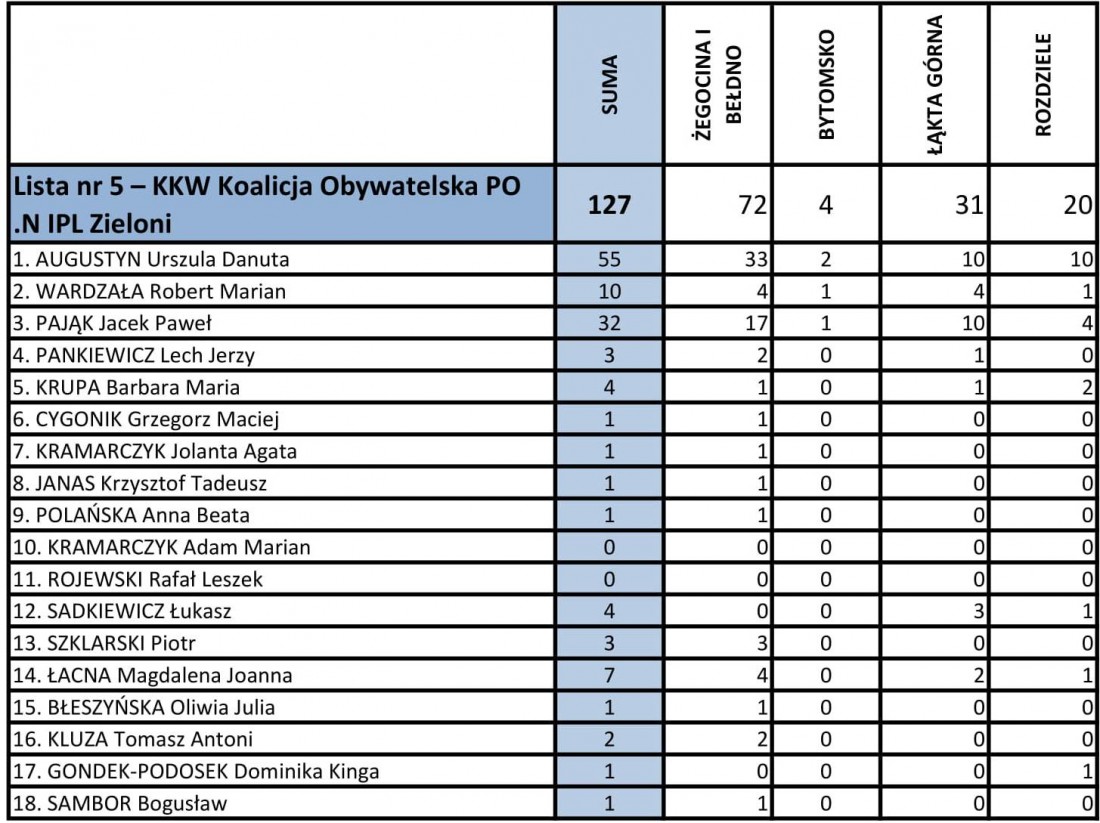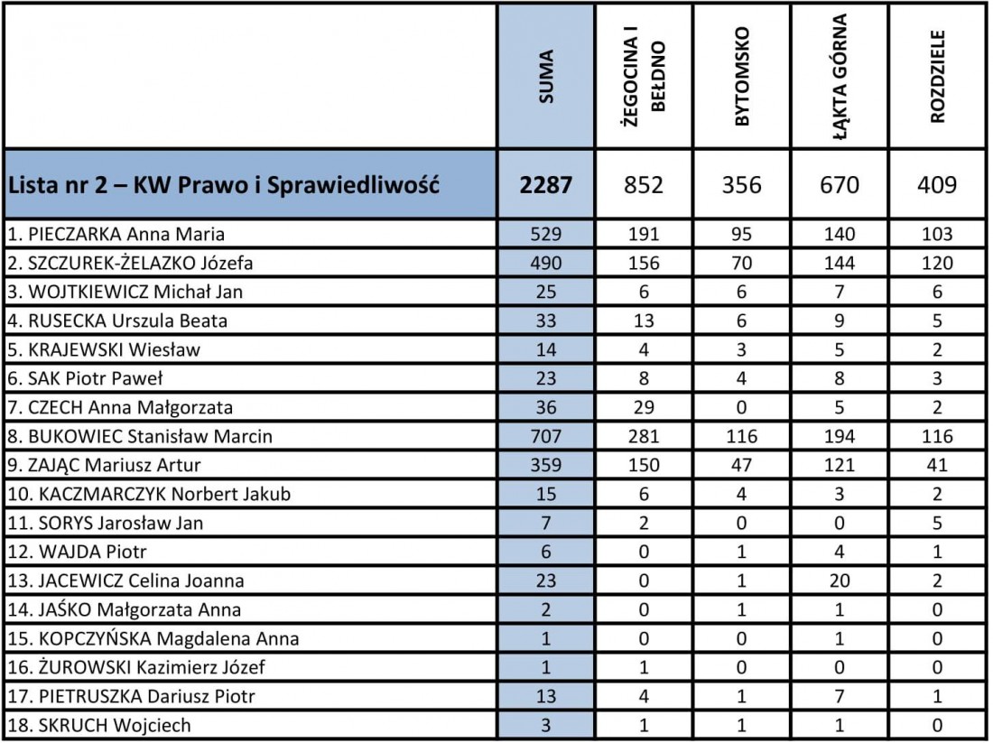 W wyborach do Sejmu, głosy naszych mieszkańców otrzymali:
