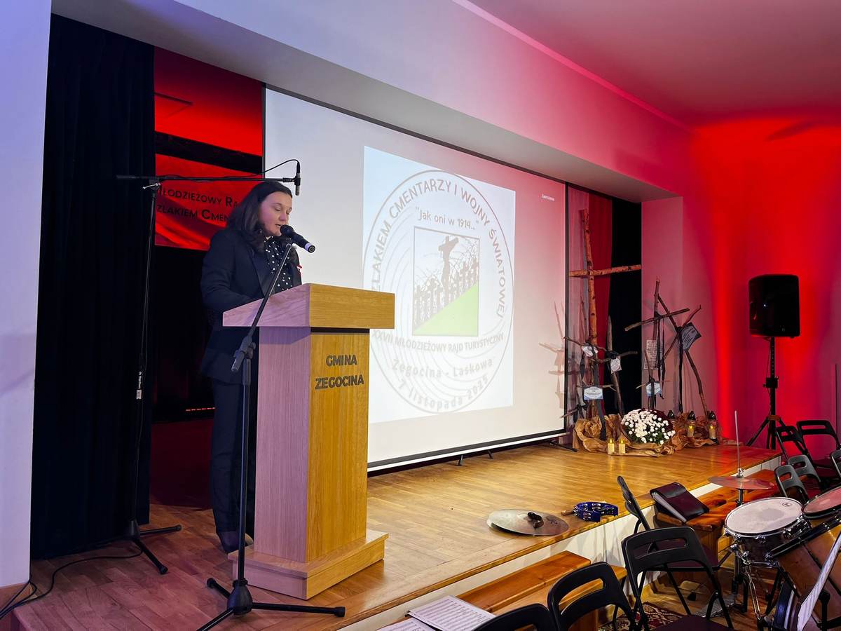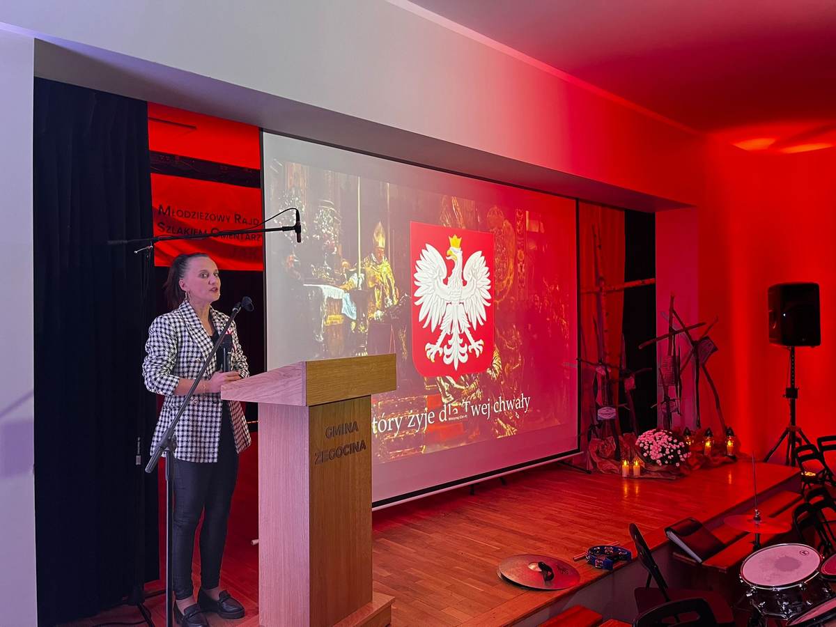 W piątkowy wieczór w sali CKSiT odbył się koncert. Wśród uczestników znaleźli się Wojciech Wrona Wójt Gminy Żegocina, Joanna Pyrz Zastępca Wójta Gminy i Sekretarz, wójt Gminy Laskowa Piotr Stach, uczestnicy Młodzieżowego Rajdu Turystycznego, przedstawiciele władz samorządowych, nauczyciele, młodzież szkolna oraz zaproszeni goście. Uroczystość rozpoczęła Dyrektor CKSiT w Żegocinie Magdalena Adamska-Urban, która powitała zgromadzonych. Na scenie wystąpiła Szkoła Muzyczna I stopnia w Żegocinie i Laskowej pod kierownictwem Dyrektora Tomasza Cudejko i batutą Bogdana Tomali, prezentując piękny koncert patriotyczny, który wzruszył publiczność. Podczas uroczystości głos zabrali Wójt Gminy Żegocina – Wojciech Wrona oraz Wójt Gminy Laskowa – Piotr Stach, dziękując młodzieży i opiekunom za kultywowanie pamięci. Na zakończenie Dyrektorzy CKSiT w Żegocinie – Magdalena Adamska-Urban oraz GOKSiT w Laskowej – Zdzisław Pajor wręczyli podziękowania nauczycielom – opiekunom drużyn za ich zaangażowanie i współpracę.