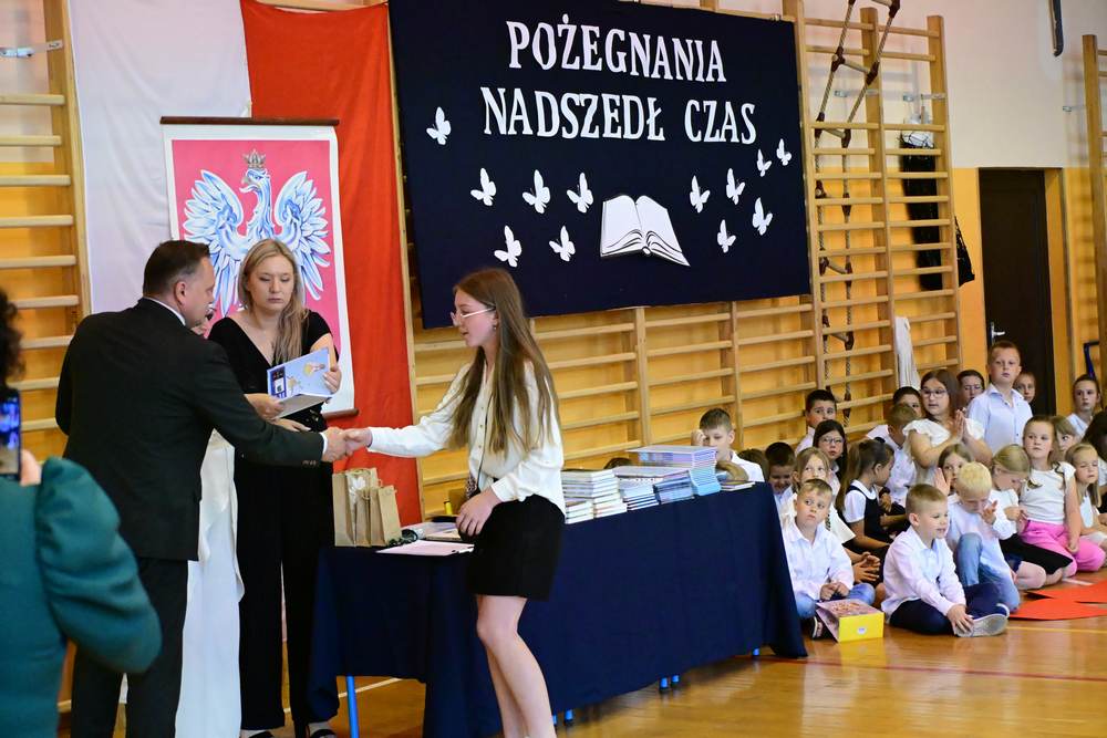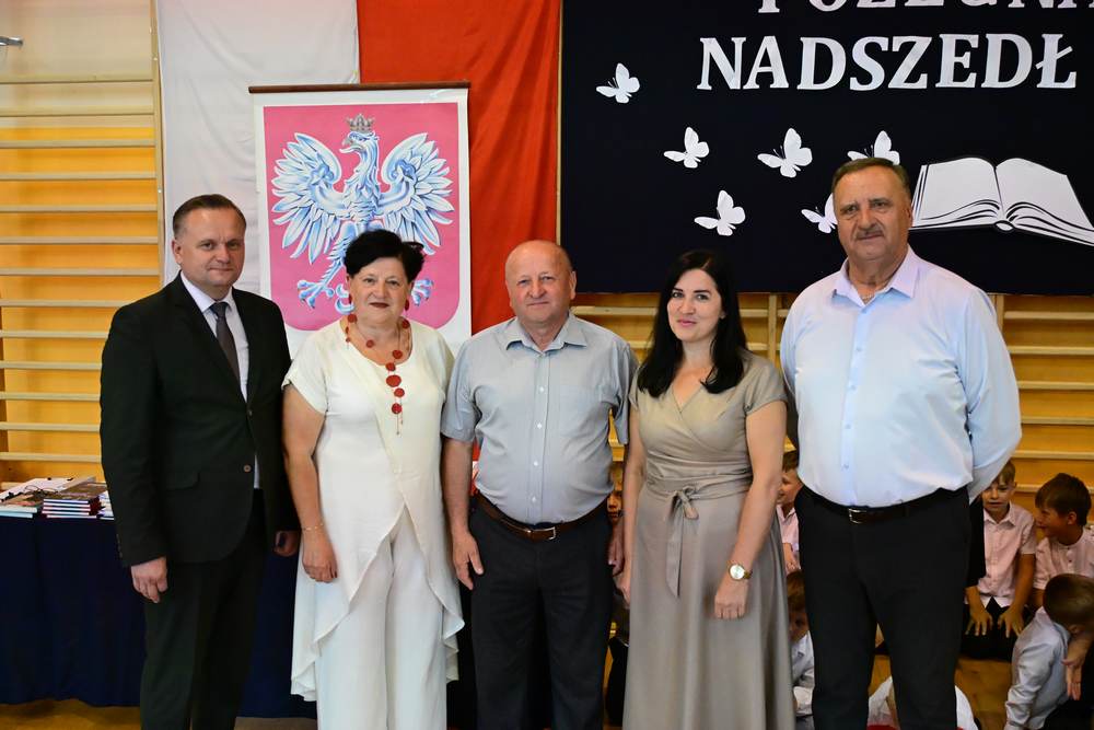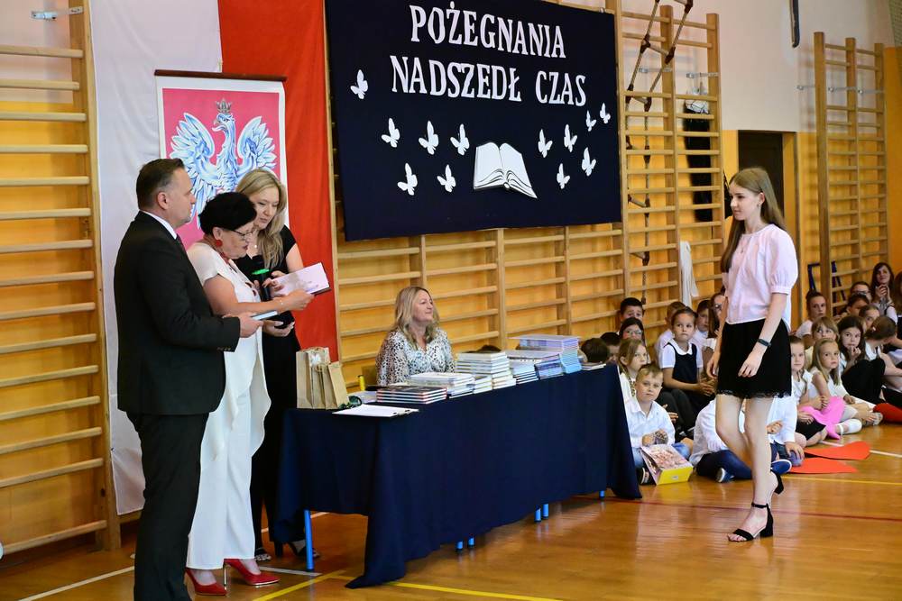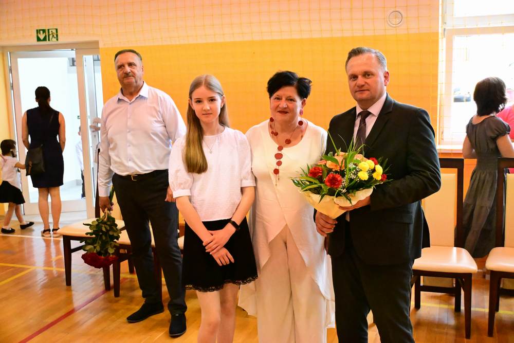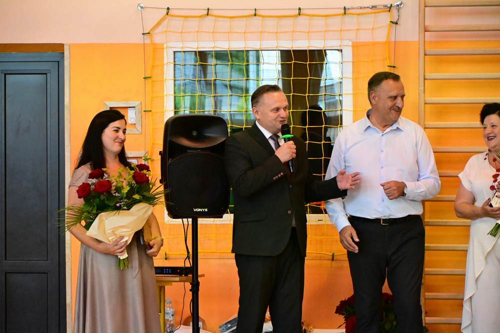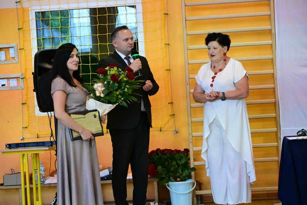 Zasłużone podziękowania i kwiaty otrzymała odchodząca po latach pracy Pani Dyrektor Lucyna Nowak , której lata pracy i zaangażowanie zasługą na podziw. Podczas uroczystości pożegnano także Pana Jana Mikusa, który przez 46 lat służył społeczności szkolnej jako nauczyciel edukacji wczesnoszkolnej. Jego wkład w wychowanie wielu pokoleń uczniów zasługuje na najwyższe uznanie! Pożegnano także pracownika Szkoły, który pracował w budynku Szkoły przez wiele lat oraz pomagał przy jej rozbudowie -Pana Ignacego Rożnowskiego.