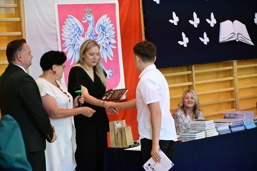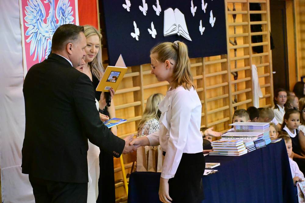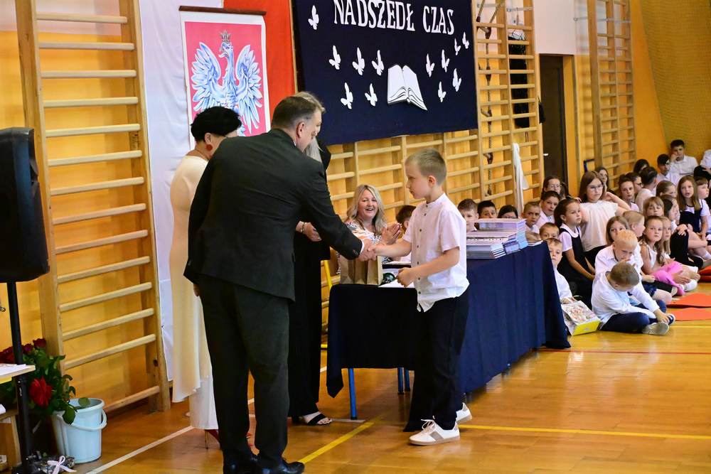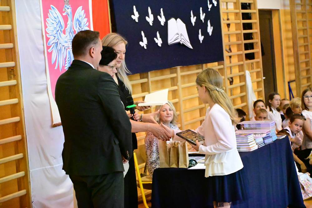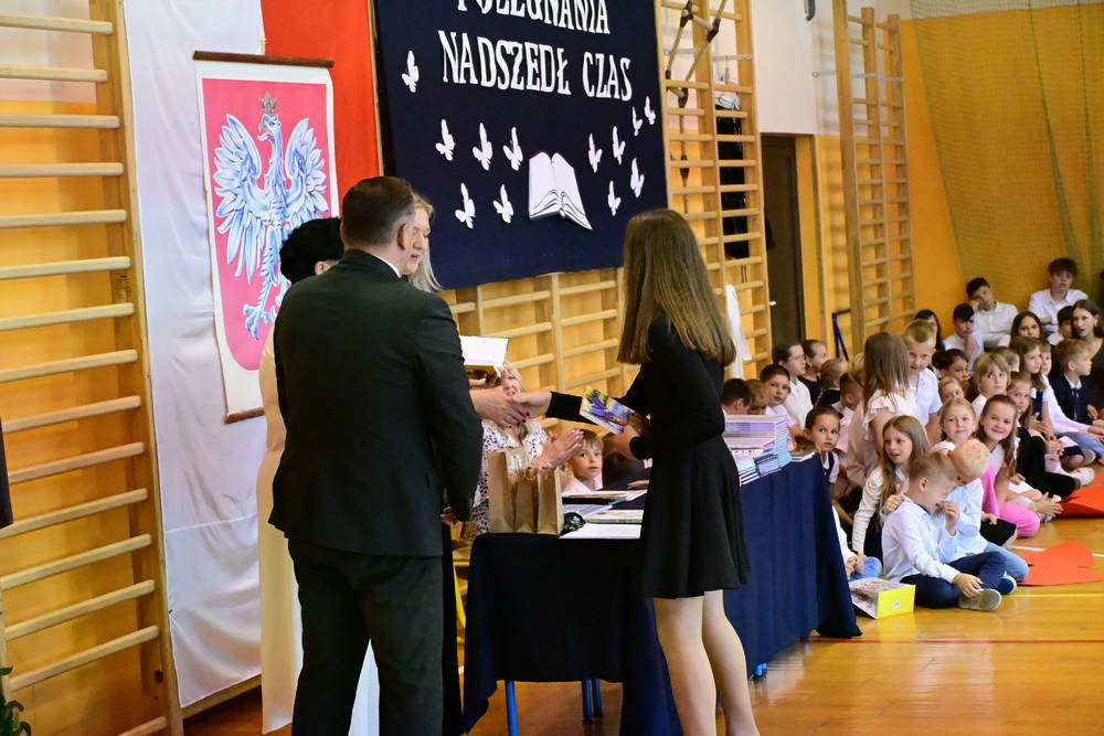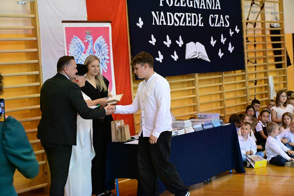 Zasłużone podziękowania i kwiaty otrzymała odchodząca po latach pracy Pani Dyrektor Lucyna Nowak , której lata pracy i zaangażowanie zasługą na podziw. Podczas uroczystości pożegnano także Pana Jana Mikusa, który przez 46 lat służył społeczności szkolnej jako nauczyciel edukacji wczesnoszkolnej. Jego wkład w wychowanie wielu pokoleń uczniów zasługuje na najwyższe uznanie! Pożegnano także pracownika Szkoły, który pracował w budynku Szkoły przez wiele lat oraz pomagał przy jej rozbudowie -Pana Ignacego Rożnowskiego.