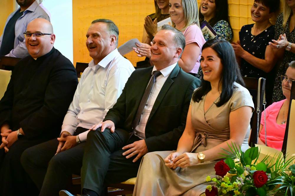 Wydarzenie zgromadziło przedstawicieli władz lokalnych, Wójta Wojciecha Wronę, Zastępcę Wójta i Sekretarz Joannę Pyrz, uczniów, nauczycieli oraz rodziców, a