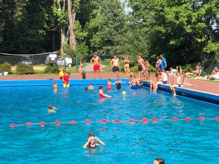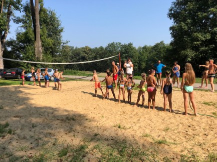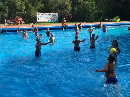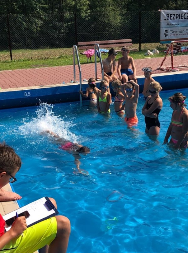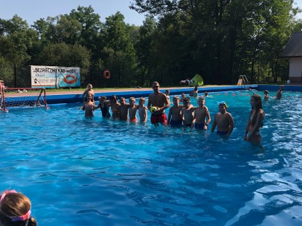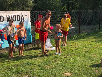 Nie tylko dzieci, ale i dorośli rywalizowali w kilku konkurencjach: mecz piłki wodnej (ze względu na dużą ilość chętnych rozegrano aż 4 mecze), przeciąganie liny na piasku, nurkowanie po krążki i nurkowanie z przeszkodami, a także konkurs plastyczny na najlepsze wspomnienie z wakacji. Wszyscy biorący udział w zawodach otrzymali nagrody.Do zobaczenia za rok na basenie w Łąkcie Górnej!