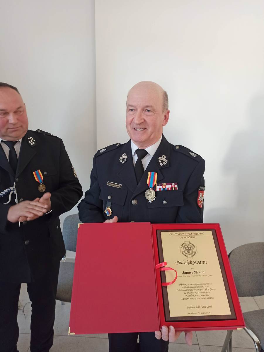 w remizie OSP KSRG Łąkta Górna odbyło się zebranie z udziałem zaproszonych gości, wśród których znaleźli się m.in. radny wojewódzki Piotr Dziurdzia, Zastępca Komendanta Powiatowego PSP w Bochni st. kpt. Bartłomiej Łącki, Prezes Zarządu Oddziału Powiatowego ZOSP RP w Bochni dh Tomasz Całka, Wójt Gminy Żegocina Wojciech Wrona oraz Zastępca Wójta Joanna Pyrz. Podczas spotkania wręczono odznaczenia „Zasłużony dla Ziemi Bocheńskiej”, które otrzymali: dh Janusz Stańdo, dh Tomasz Ptak, dh Józef Adamczyk oraz dh Ryszard Adamczyk. Szczególne podziękowania skierowano do dh Janusza Stańdo, który po 20 latach zakończył pełnienie funkcji naczelnika jednostki.